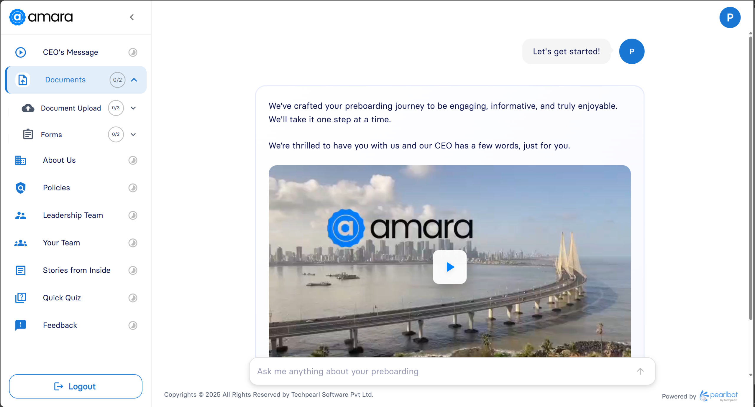 New hires get a mobile-first welcome journey with culture bites, role clarity, team intros, and essential checklists – helping them feel informed and confident before Day 1.